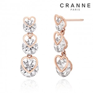 끄란느 하트 큐빅 3단 드롭 귀걸이 C24EB321 / 색상 택일