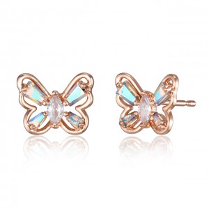 끄란느 14K GF 레인보우 스톤 나비 귀걸이 C24EGF203 로즈골드